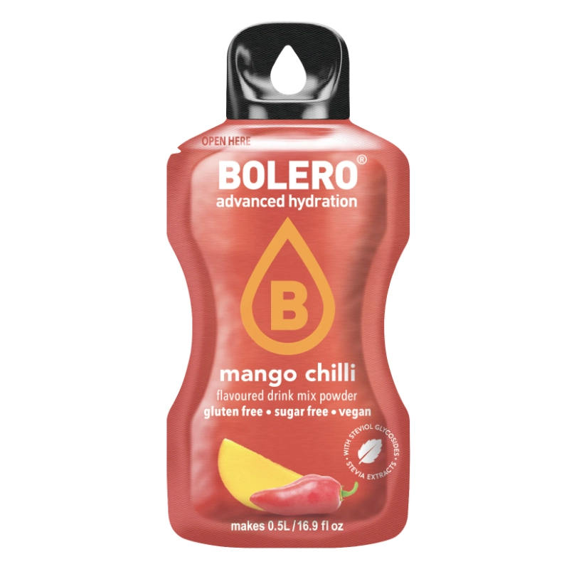 Bolero® Mango Chili is perfect for those who like to think outside the box. The contrast of sweet and spicy makes this drink irresistible in warm weather, after exercise, or as a refreshing alternative to standard soft drinks. Sugar-free, guilt-free – just a full-on flavor experience.