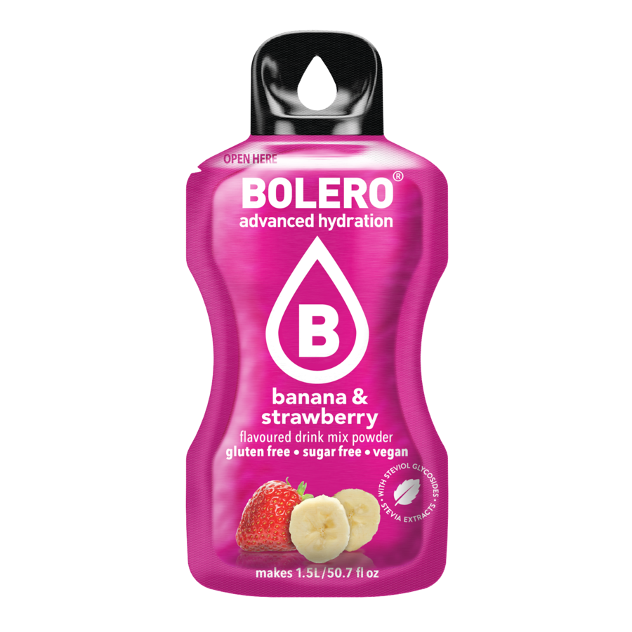 Laat je verrassen door de heerlijke combinatie van banaan en aardbei in Bolero Banaan-Aardbei en maak van hydratatie een smaakvolle en fruitige gewoonte.